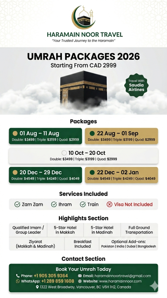 Haramain Noor manages every detail of your journey.